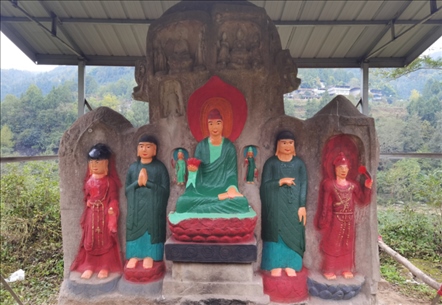 此外在四川廣安、資陽、內(nèi)江等地也存在類似情況。位于廣安市經(jīng)開區(qū)的金鳳山摩崖造像,開鑿于宋代,1994年當(dāng)?shù)厝罕娮阅假Y金對(duì)造像的殘缺部位進(jìn)行了修補(bǔ),并涂上紅、藍(lán)、青三色油漆。位于內(nèi)江市資中縣的羅漢洞,建于宋代,1998年,當(dāng)?shù)厝罕娮曰I資金對(duì)羅漢洞內(nèi)“拈花微笑佛”進(jìn)行裝彩重繪,目前,其余造像無妝彩重塑現(xiàn)象。此外,核查中還發(fā)現(xiàn)四川資陽市雁江區(qū)的半月山摩崖造像,佛足部分有人為刻畫痕跡。