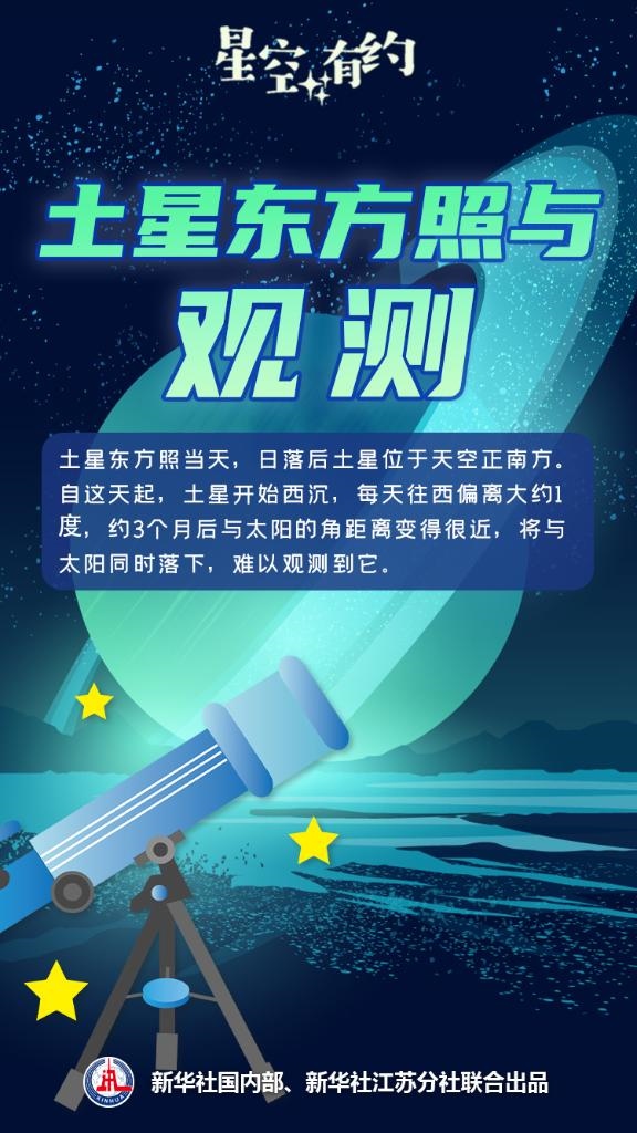 “土星東方照當(dāng)天,日落后土星位于天空正南方。自這天起,土星開(kāi)始西沉,每天往西偏離大約1度,約3個(gè)月后與太陽(yáng)的角距離變得很近,將與太陽(yáng)同時(shí)落下,難以觀測(cè)到它?!蓖蹩瞥f(shuō)。