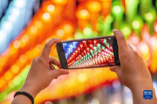 11月23日,游客在泰國南奔府哈利奔猜寺拍攝燈籠。
