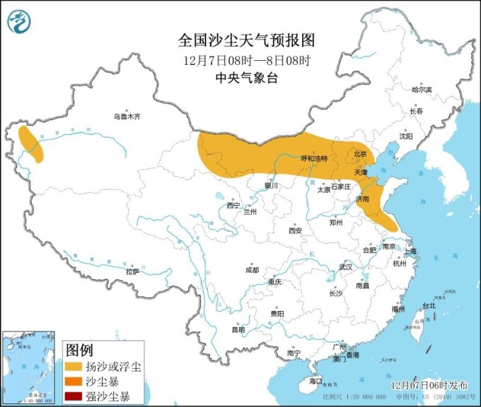 另外,7日,內(nèi)蒙古中西部、甘肅西部、陜西北部、山西北部、北京、天津、河北中北部、山東西部、江蘇北部等地的部分地區(qū)有揚沙或浮塵天氣。