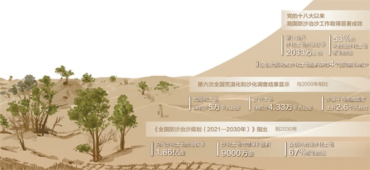 如今,烏蘭布和沙漠林草覆蓋度從上世紀(jì)50年代初期的0.04%提高到37.2%,呈現(xiàn)出“整體好轉(zhuǎn)、改善加速”的良好態(tài)勢,正在實現(xiàn)從“沙進(jìn)人退”向“綠進(jìn)沙退”的轉(zhuǎn)變。
