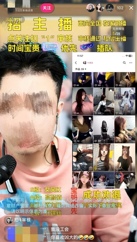 “跟我做主播,幫助負(fù)宅(債)女年底前實(shí)現(xiàn)宅(債)務(wù)清零,順帶提一臺(tái)小汽車。”中青報(bào)·中青網(wǎng)記者看到,一名IP地址顯示在湖北黃石的博主去年8月以來陸續(xù)發(fā)布多條“女大學(xué)生博主招募”短視頻,并聲稱:在他的運(yùn)作下,“新人主播在線人數(shù)300+,一場(chǎng)直播音浪四五萬”。他甚至“喊話”當(dāng)?shù)啬掣咝E骸艾F(xiàn)在緊急招募20個(gè)大學(xué)生,每天只需直播兩小時(shí),1個(gè)月播25天,可以拿到底薪1500元,沒有禮物要求,只需要有比較好的形象?!?/p>