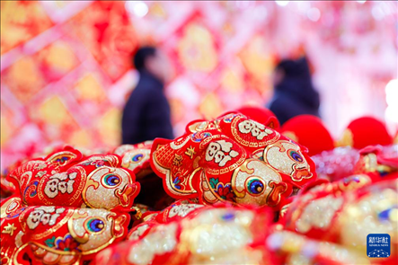 1月28日,市民在河南省焦作市武陟縣一處年貨市場選購新年飾品。