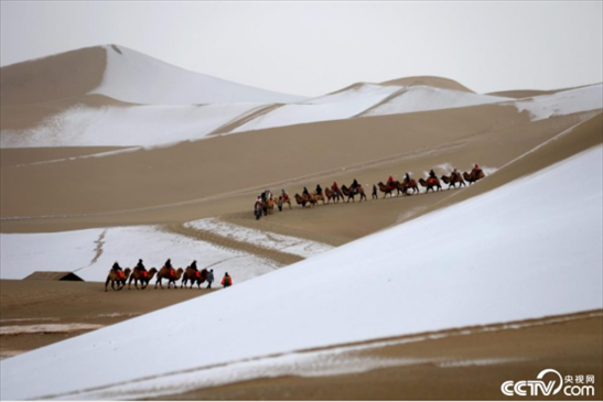 2024年1月24日,受冷空氣影響,甘肅省敦煌市迎來今年首場(chǎng)降雪。