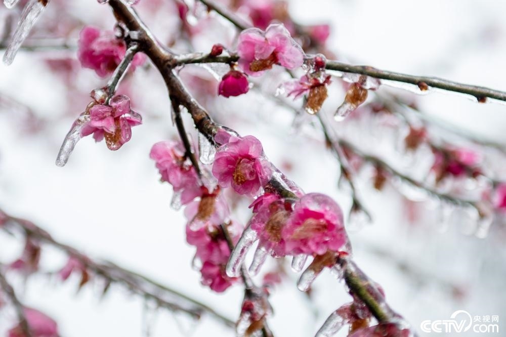 杭州,連續(xù)低溫下,雨凇現(xiàn)象頻現(xiàn)。位于半山國家森林公園的望宸閣出現(xiàn)“冰凍梅花”景觀。
