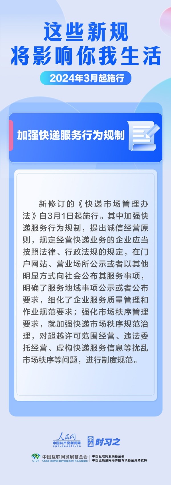 加大對行賄行為懲治力度;規(guī)范檔案收集管理;加強(qiáng)快遞服務(wù)行為規(guī)制……3月起,這些新規(guī)施行,將影響你我生活。