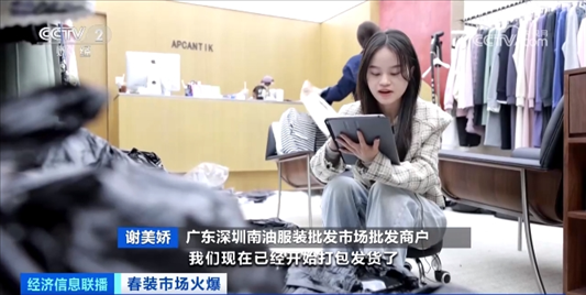 廣東深圳南油服裝批發(fā)市場批發(fā)商戶邱林告訴記者,去年這個(gè)時(shí)候,他們店里積壓了很多春季庫存,但今年幾天就賣完了原本供2個(gè)月的現(xiàn)貨,目前工廠都忙著趕訂單。