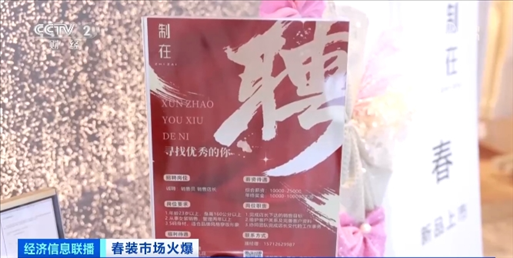 服裝批發(fā)生意的火熱,也帶來了用工需求的增加,不少檔口都貼上了招工的廣告。廣東深圳南油服裝批發(fā)市場批發(fā)商戶 邱林:現(xiàn)在的翻單需求量比較大,大家都在搶工人,現(xiàn)在排單排到快半個(gè)月、十幾天,我們店鋪還在招店員。