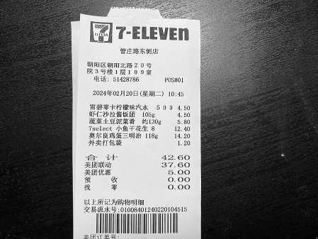 上周,市民李先生通過外賣平臺在711便利店管莊路東側(cè)店下單了5件商品。收到外賣后,李先生發(fā)現(xiàn),商品包裝上的價格與自己下單時的價格不一致?!皧W爾良雞蛋三明治14.2元,而包裝上標(biāo)注的是13.5元,多收了7毛?!崩钕壬f。