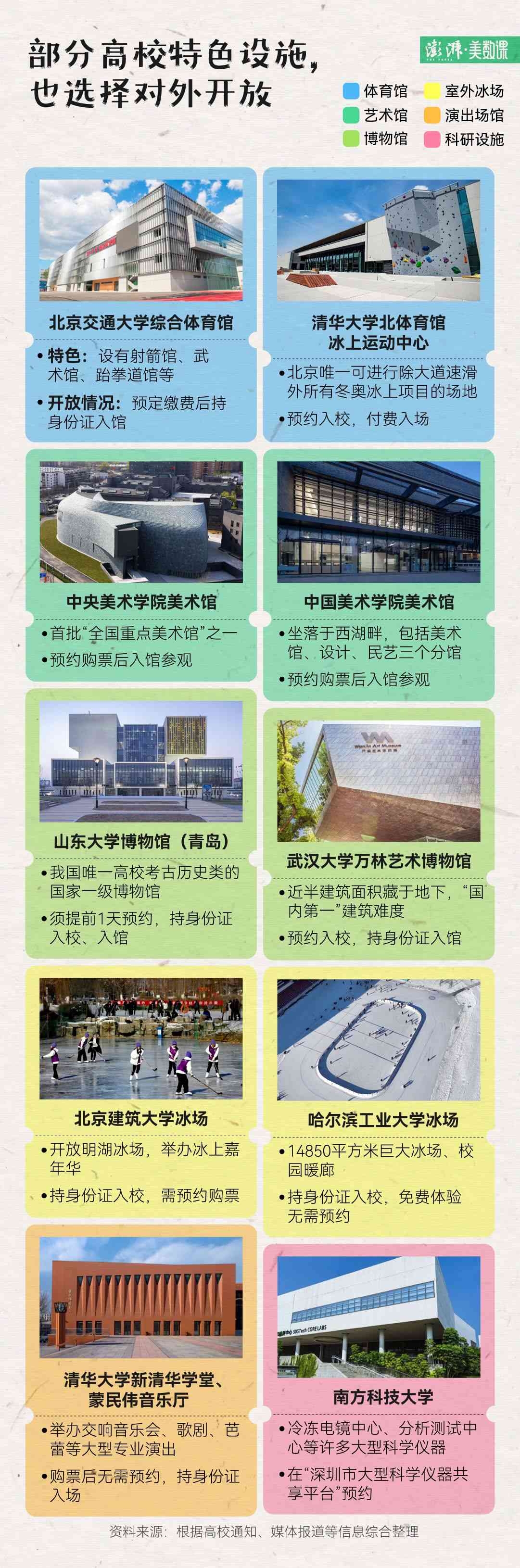 如果想逛博物館看展,高校依靠專業(yè)資源打造的各類展館,包括語言、水產(chǎn)、中草藥,民族、玩具、古生物,很有特色。比如,清華大學(xué)藝術(shù)博物館和山東大學(xué)博物館甚至位列國家一級博物館。