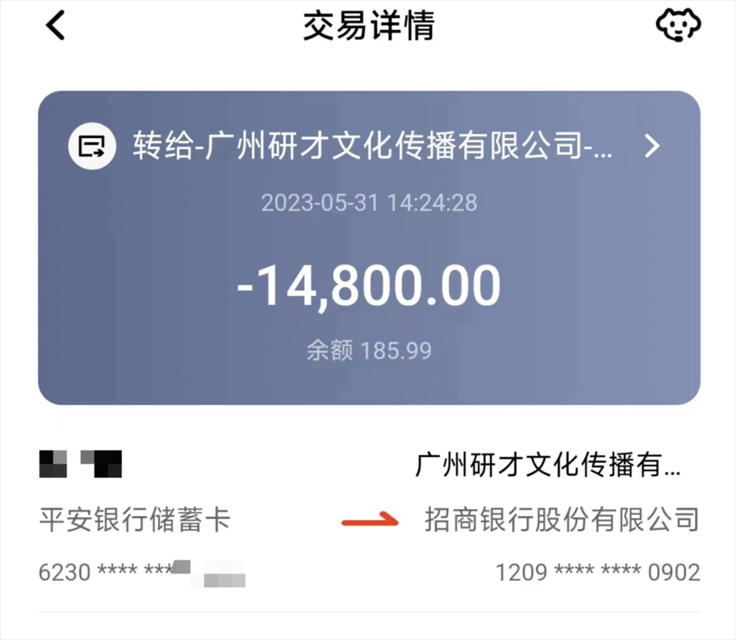 來自北京的陳鑫(化名)說,他被上述話術(shù)吸引,去年5月報了廣州研才教育機構(gòu)的“院校推免保送研究生課程”。咨詢時,招生老師向他承諾“渠道直錄,考研保過”,并稱還能通過“院校委培”的方式,幫他把20萬元左右的MBA學(xué)費降為1.5萬元。