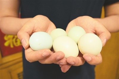 “你摸摸”,說著,盧大爺把雞蛋遞了過來。一摸,還熱乎著!盧大爺邊說,邊把雞蛋放進鍋里煮?!斑@是剛下的綠皮雞蛋,是五彩蛋雞下的?!?/P>
