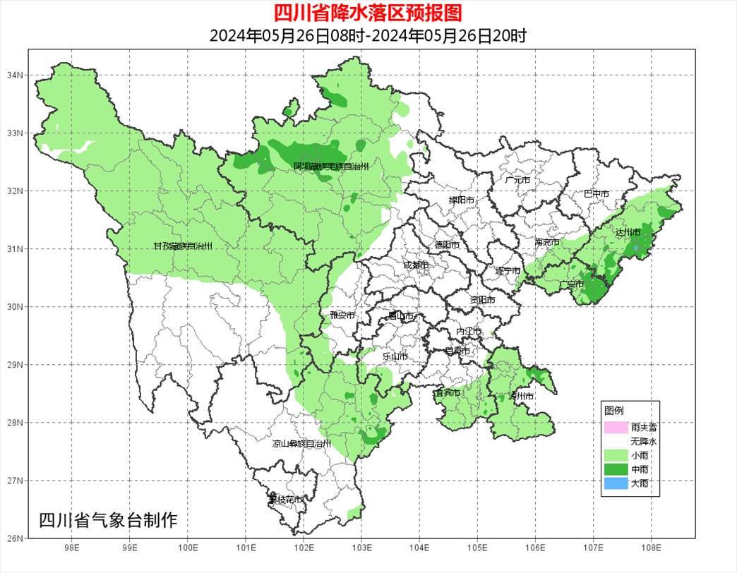 明天白天:盆地大部多云間晴,其中達(dá)州、廣安、瀘州3市有陣雨或雷雨;阿壩州大部、甘孜州北部東部、涼山州東北部多云間陰有分散陣雨或雷雨,其中阿壩州北部有中雨,甘孜州和攀西地區(qū)的其余地方多云間晴。