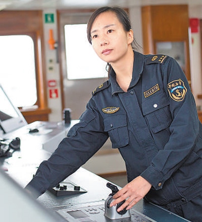 “不試試,怎么知道行不行?!弊鳛榇衔ㄒ坏呐娏暼保x絕了特殊照顧。一暈船想吐,她就跑到最搖晃的駕駛臺,憑著“以暈治暈”這股不服輸?shù)捻g勁,以最快速度適應了惡劣海況。她每天堅持完成8小時航行班任務,還協(xié)助開展搜救協(xié)調,與中外各方溝通聯(lián)絡,得到充分歷練成長。