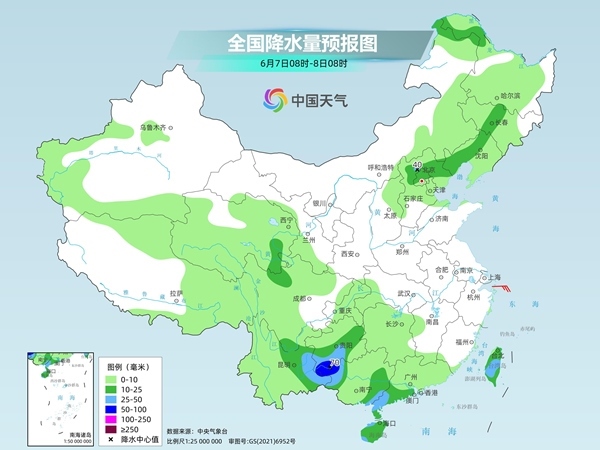 昨天,受高空槽東移影響,華北、東北一帶多陣雨或雷陣雨天氣;南方依然降雨頻繁,較強降雨主要出現(xiàn)在華南等地部分地區(qū)。監(jiān)測顯示,廣東中西部、廣西東部和南部、云南中南部、福建北部、浙江南部以及海南島北部等地部分地區(qū)出現(xiàn)大到暴雨,廣西貴港、廣東湛江、云南普洱局地大暴雨;內(nèi)蒙古東南部、北京東部、天津中部、黑龍江東南部、青海東北部、甘肅中部等地部分地區(qū)出現(xiàn)中到大雨,內(nèi)蒙古興安盟、黑龍江哈爾濱局地暴雨。