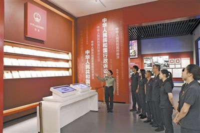 近日,江西省瑞金市人民法院分批次組織黨員干部前往中華蘇維埃共和國(guó)法制建設(shè)紀(jì)念館參觀學(xué)習(xí),共同回顧紅色法治發(fā)展軌跡,賡續(xù)紅色法治血脈。紀(jì)念館中復(fù)原的“七里坪革命法庭”“馬錫五下鄉(xiāng)斷案”場(chǎng)景逼真且震撼,黨員干部不時(shí)駐足觀看,互相交流討論。圖為法院黨員干部聆聽(tīng)講解。