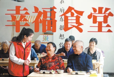 山東省臨沂市郯城縣府東社區(qū)幸福食堂,老年人正在就餐。張春雷攝(人民視覺)