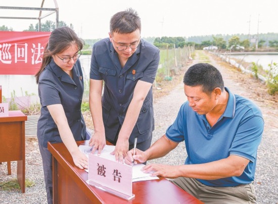 近日,安徽省天長市人民法院秦欄人民法庭法官來到東風村螃蟹養(yǎng)殖基地,公開開庭審理一起農業(yè)承包合同糾紛案。法官經過現(xiàn)場勘查、細心調解,當場化解糾紛,養(yǎng)殖戶投放的500斤蟹苗有了著落,村委會減少了經濟損失。