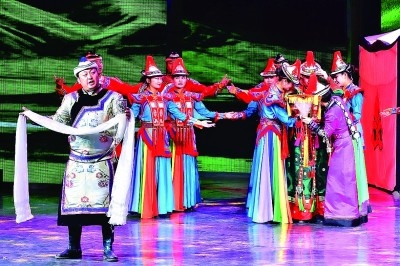 7月12日晚,一場非遺展演盛會在祁連山北麓的甘肅省張掖市肅南裕固族自治縣舉行。來自甘肅省內(nèi)各地的非遺傳承人展示了裕固族婚俗、洮岷花兒、蘭州鼓子、甘州小調(diào)等非遺項目。圖為肅南縣非物質(zhì)文化遺產(chǎn)保護傳承中心演員表演國家級非遺代表性項目裕固族婚俗。(新華社記者 郎兵兵攝)