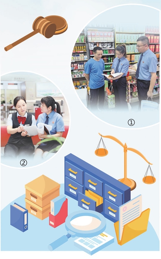 圖①:郯城縣檢察院檢察官在向當(dāng)事人核實(shí)了解情況。顧嘉豪攝 圖②:蘭山區(qū)檢察院檢察官在向銀行工作人員取證。李春晨攝