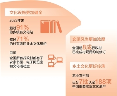 新時(shí)代以來,各地區(qū)各部門深入推進(jìn)農(nóng)村精神文明建設(shè)。加快完善鄉(xiāng)村文化設(shè)施,健全農(nóng)村公共文化體系,農(nóng)家書屋、鄉(xiāng)村文化禮堂等打通文化惠民“最后一公里”;發(fā)展群眾性文體活動(dòng),廣泛開展“村BA”“村超”“村晚”等,豐富鄉(xiāng)村精神文化生活,展現(xiàn)鄉(xiāng)親們積極向上的精氣神;培育挖掘鄉(xiāng)土文化人才,引導(dǎo)文化工作者、科普工作者、文化志愿者等投身鄉(xiāng)村文化建設(shè);賡續(xù)鄉(xiāng)村優(yōu)秀傳統(tǒng)文化,把對(duì)非遺的保護(hù)傳承和開發(fā)利用有機(jī)結(jié)合,將藝術(shù)與古村落、古民居的活化利用有機(jī)結(jié)合;持續(xù)推進(jìn)農(nóng)村移風(fēng)易俗,革除高價(jià)彩禮、人情攀比、厚葬薄養(yǎng)、鋪張浪費(fèi)等陳規(guī)陋習(xí),反對(duì)迷信活動(dòng),推動(dòng)形成文明鄉(xiāng)風(fēng)、良好家風(fēng)、淳樸民風(fēng);健全鄉(xiāng)村治理體系,有效發(fā)揮村規(guī)民約作用,推廣文明積分等方式,激勵(lì)農(nóng)民自覺踐行文明新風(fēng)……這些舉措為加強(qiáng)農(nóng)村精神文明建設(shè)提供了有力抓手,推動(dòng)現(xiàn)代文明理念融入鄉(xiāng)村生活方方面面,為推進(jìn)鄉(xiāng)村全面振興注入新動(dòng)能。