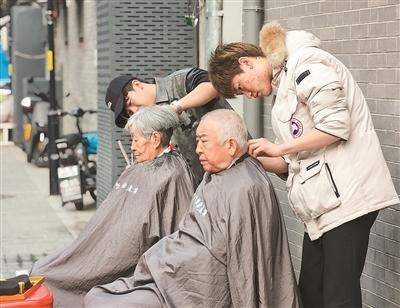 理發(fā)師在為社區(qū)老人理發(fā)。趙家樓社區(qū)供圖