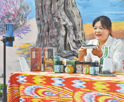 因為電商發(fā)展而受益的不只王曉紅。羅布麻茶、羅布麻蜜、尉犁小油馕、庫爾勒香梨、若羌紅棗、昆侖雪菊……走進(jìn)總面積近3000平方米的尉犁縣電商直播基地,100多種優(yōu)質(zhì)農(nóng)特產(chǎn)品整齊排列,不少主播正在直播。