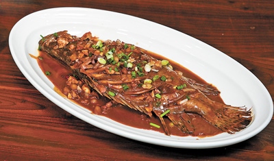 “我們在炒制時加入了五花肉丁,煸出油來,為臭鱖魚增添一份獨特的肉香。再加上績溪當?shù)夭烧闹窆S,讓臭鱖魚更具鮮味?!睆埞忭樥f,為了更入味,還要用火燉煮15—20分鐘。一道臭鱖魚,體現(xiàn)了徽菜獨特的制作技藝——重油重色重火功。