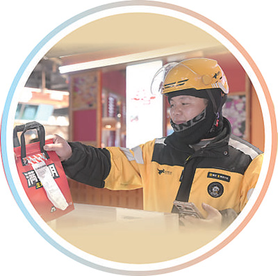 臨近下午兩點(diǎn),終于到了王叢叢的午飯時(shí)間。他來到了一家快餐店,點(diǎn)了份螺絲椒炒肉套餐?!斑@家店對騎手有優(yōu)惠,所以我經(jīng)常來。”王叢叢說,騎手吃飯時(shí)間不固定,好在附近有不少商家推出了面向騎手的優(yōu)惠和延時(shí)服務(wù),讓騎手在繁忙的工作之余能吃上熱乎乎的飯菜?!捌谕性絹碓蕉嗟纳碳腋M(jìn),讓外賣小哥感受城市的溫暖。”