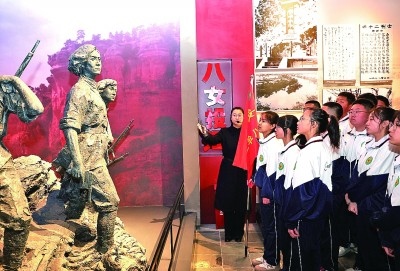 4月3日,遼寧省本溪市本溪滿族自治縣抗聯(lián)中學(xué)的學(xué)生在東北抗聯(lián)史實陳列館參觀。新華社記者 李鋼攝