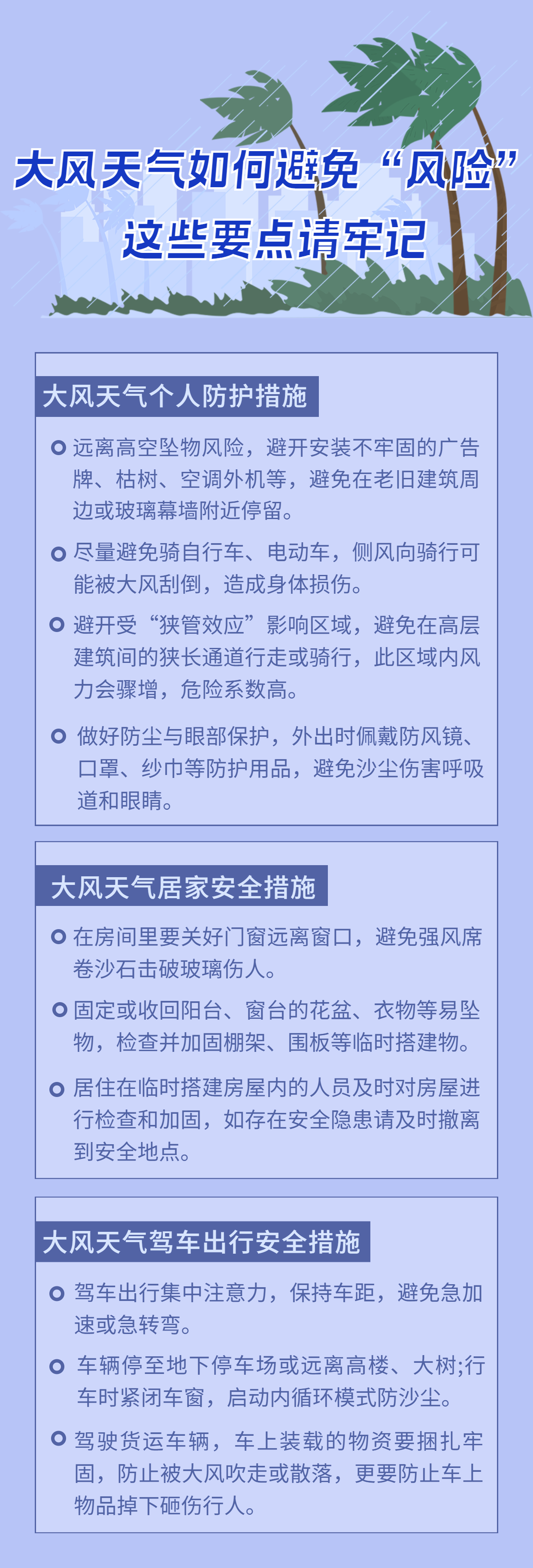 據(jù)氣象部門預(yù)報,未來幾日,全國多地將出現(xiàn)強風天氣,部分地區(qū)陣風風力可達12~13級。春季到來,大風天氣增多,給我們的生活帶來了諸多安全隱患。該如何做好防范?一起來了解。