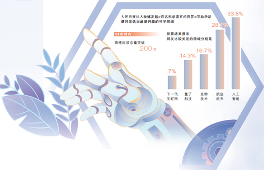 四載春秋,百篇故事。今天,本版推出“弘揚(yáng)科學(xué)家精神”100期特別策劃。我們聯(lián)合人民日?qǐng)?bào)法人微博發(fā)起“百名科學(xué)家百問百答”活動(dòng),誠(chéng)邀廣大網(wǎng)友積極參與、踴躍向科學(xué)家提問,并推出專版報(bào)道,特邀5位院士,針對(duì)網(wǎng)友們關(guān)心關(guān)注的人工智能、航空航天、生物技術(shù)等領(lǐng)域問題進(jìn)行解答,共同探討科技新知,共同期待科技讓生活更美好……