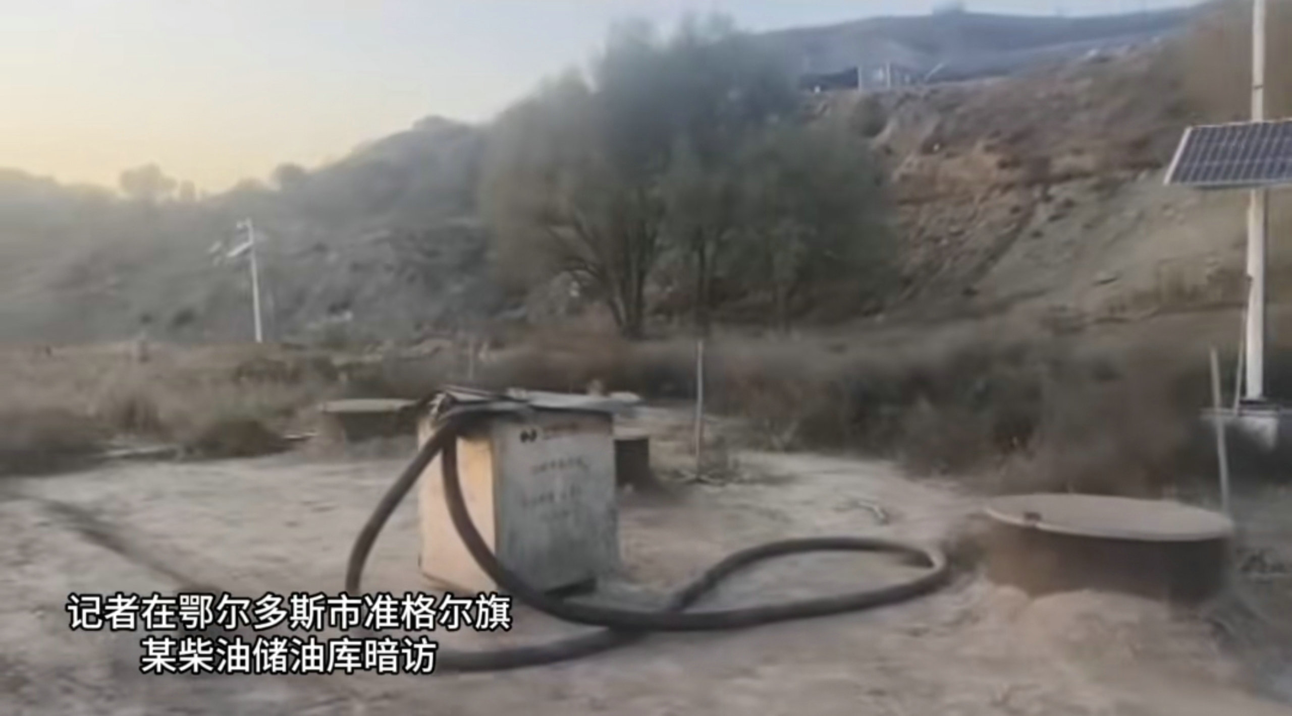 10月28日,內(nèi)蒙古日報社張弓長新聞工作室記者在鄂爾多斯市準(zhǔn)格爾旗一個緊鄰礦區(qū)的山溝里暗訪時發(fā)現(xiàn),有一處規(guī)模較大的地埋罐式柴油儲油庫,存在重大安全隱患。