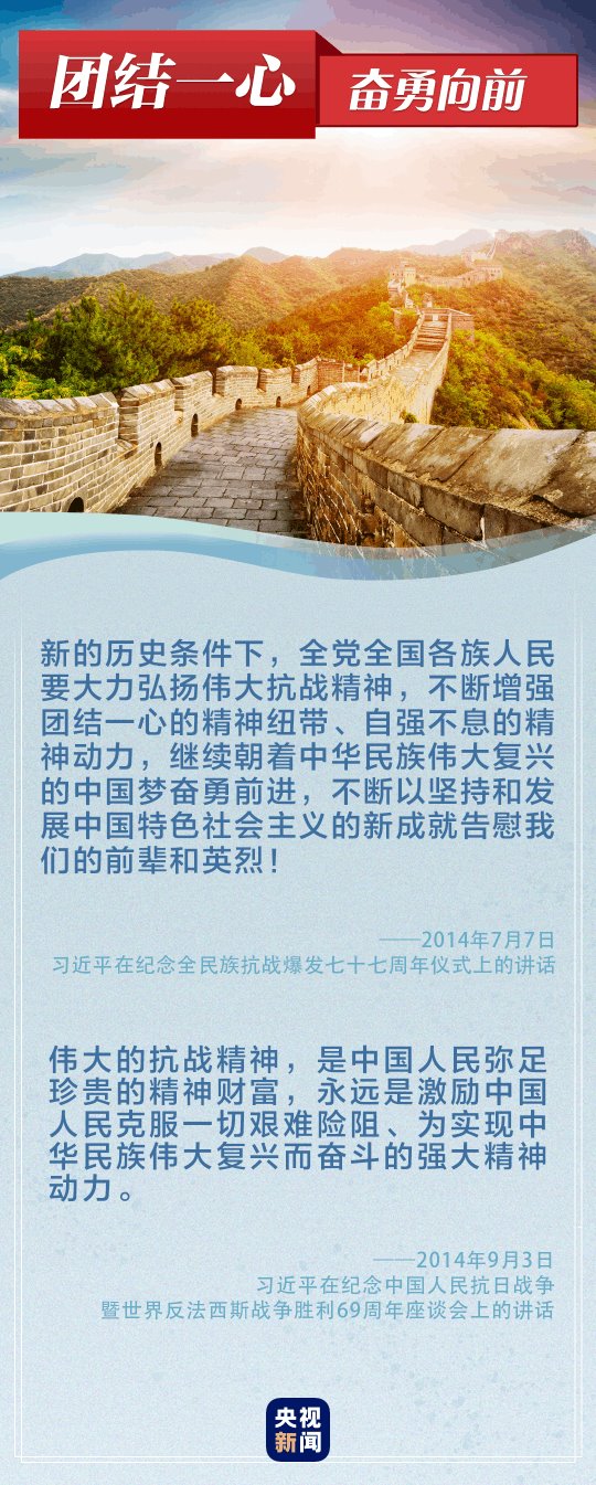 “偉大的抗戰(zhàn)精神,永遠(yuǎn)是激勵中國人民克服一切艱難險阻、為實現(xiàn)中華民族偉大復(fù)興而奮斗的強(qiáng)大精神動力?!薄罢x必勝!和平必勝!人民必勝!”黨的十八大以來,習(xí)近平總書記多次談到抗戰(zhàn)精神。讓我們重溫總書記重要論述,銘記歷史、奮勇向前。