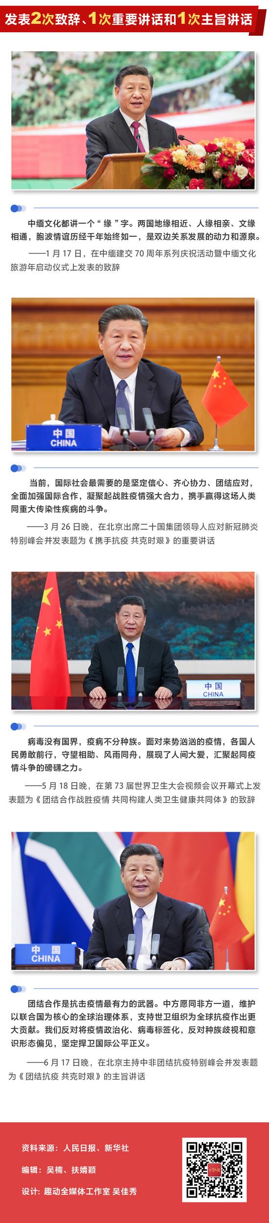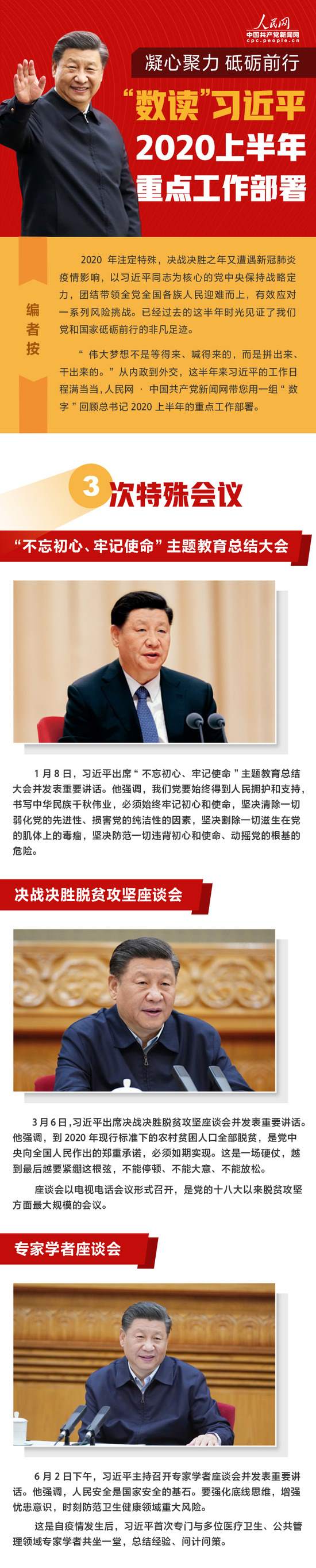細(xì)數(shù)今年上半年,習(xí)近平夙夜在公,勤勉工作,不斷刷新“忙碌指數(shù)”:數(shù)十次出席重要會(huì)議部署各項(xiàng)工作,8次國內(nèi)考察,調(diào)研足跡遍及7省區(qū)市,3次出席國際重要會(huì)議并發(fā)表講話,20余次致信、回信海內(nèi)外人士,60次就疫情防控等話題與40余位外國政要和國際組織負(fù)責(zé)人通電話……人民網(wǎng)·中國共產(chǎn)黨新聞網(wǎng)推出系列圖解報(bào)道,帶您全方面回顧習(xí)近平的2020上半年。
