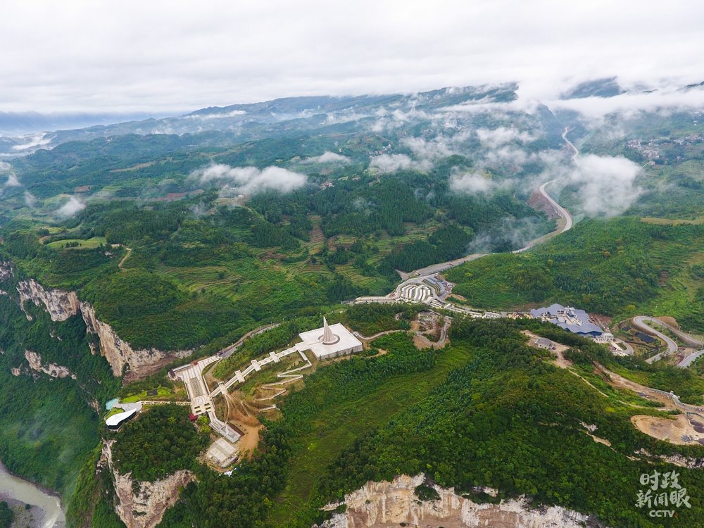 △俯瞰化屋村?!盎荨痹谝妥逭Z里是“巖壁”的意思,村民早年外出必須從懸崖峭壁邊走,地勢危險缺少防護(hù)。(總臺央視記者安楠拍攝)