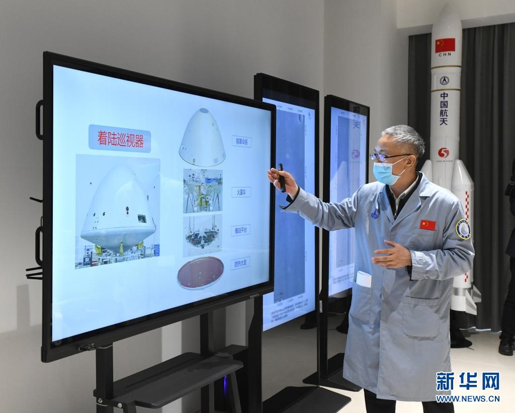 2021年5月15日,中國(guó)首次火星探測(cè)任務(wù)工程總設(shè)計(jì)師張榮橋介紹著陸巡視器有關(guān)情況。新華社記者 饒愛民 攝