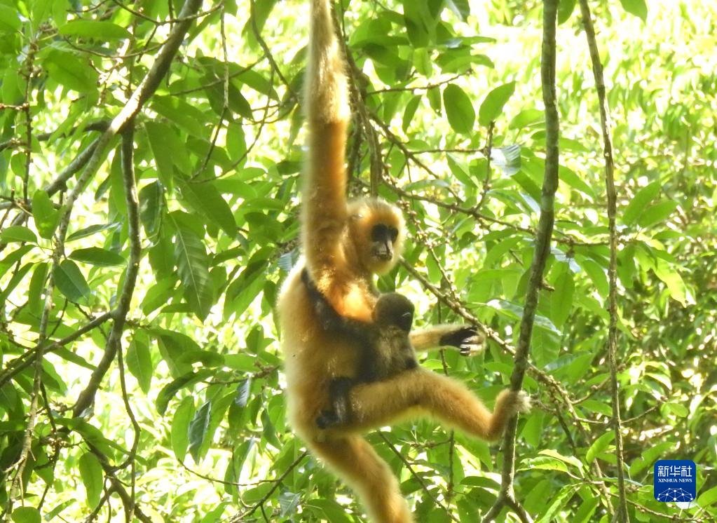 這是2021年5月拍攝的海南長(zhǎng)臂猿B群幼猿。新華社發(fā)(海南熱帶雨林國(guó)家公園管理局供圖)