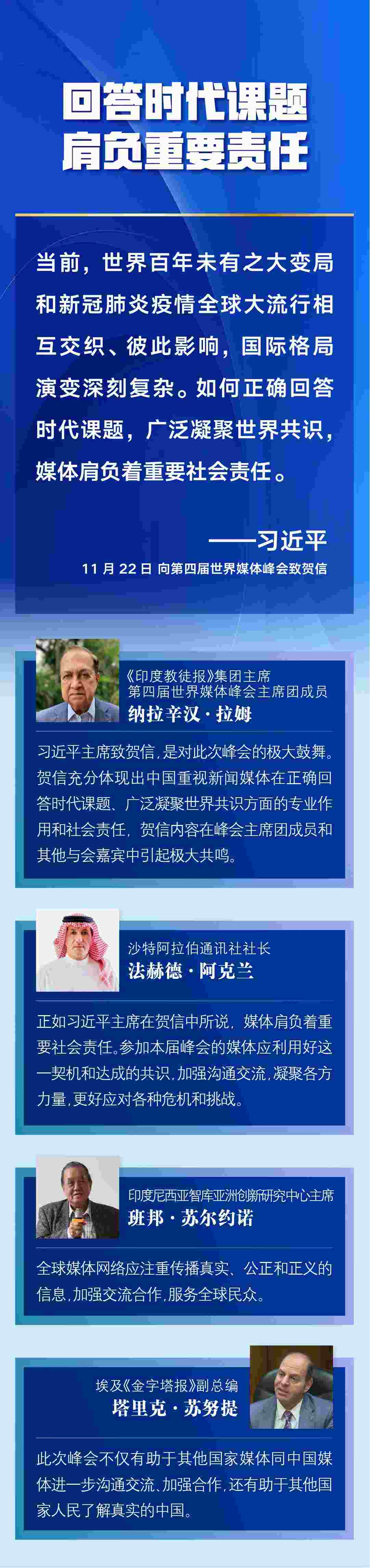 第四屆世界媒體峰會22日在北京舉行,國家主席習(xí)近平向峰會致賀信。