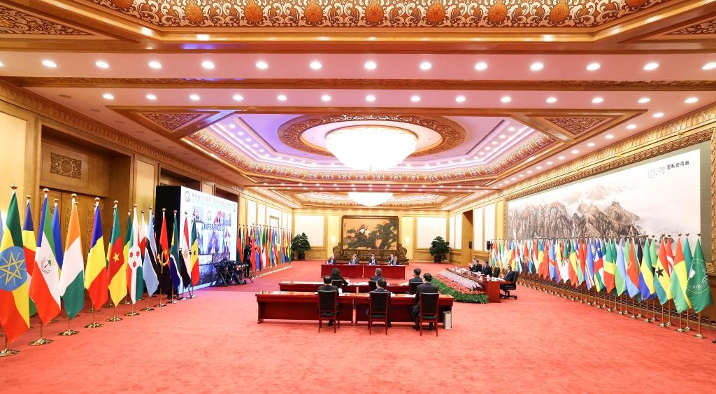 “志合者,不以山海為遠(yuǎn)”。29日晚,北京人民大會(huì)堂東大廳內(nèi),中國(guó)和53個(gè)非洲國(guó)家國(guó)旗以及非洲聯(lián)盟旗幟并排矗立、恢弘大氣,雖是“云端”相聚,但現(xiàn)場(chǎng)洋溢著濃濃情誼,昭示著中非歷久彌堅(jiān)的友好關(guān)系。
