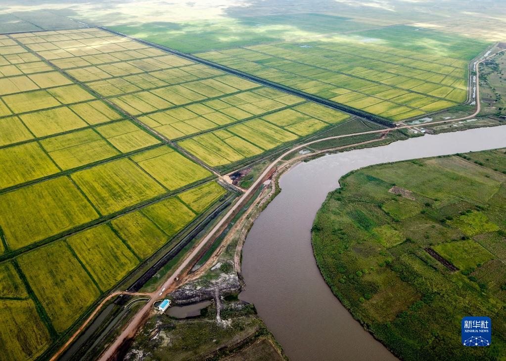 這是2019年4月7日無人機(jī)拍攝的莫桑比克萬寶莫桑農(nóng)業(yè)園的水稻田。萬寶莫桑農(nóng)業(yè)園是中國在非洲最大規(guī)模水稻種植項(xiàng)目,極大地緩解了莫桑比克糧食短缺問題。新華社記者張宇攝