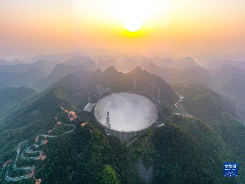 3月31日清晨拍攝的“中國天眼”全景(維護保養(yǎng)期間拍攝,無人機照片)。新華社記者歐東衢攝