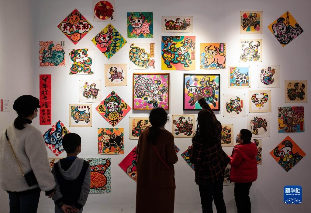2月12日,在成都市人民公園,觀眾在觀看成都年畫(huà)展。新華社記者 江宏景/攝