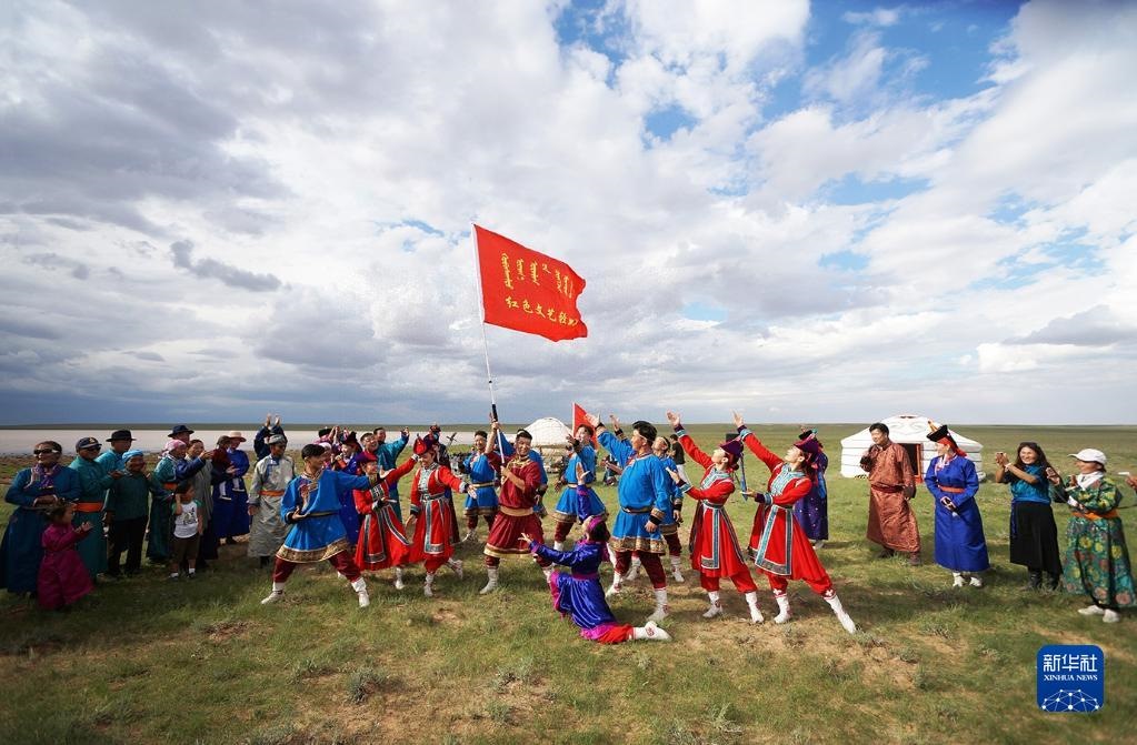 蔚藍(lán)的天空下,紫紅色的蒙古舞袍隨風(fēng)漫卷,馬頭琴琴聲悠揚(yáng)飄蕩,內(nèi)蒙古的廣袤草原上,一支支烏蘭牧騎為群眾唱響動(dòng)人牧歌。60多年來(lái),烏蘭牧騎隊(duì)員們始終扎根生活沃土、服務(wù)牧民群眾。