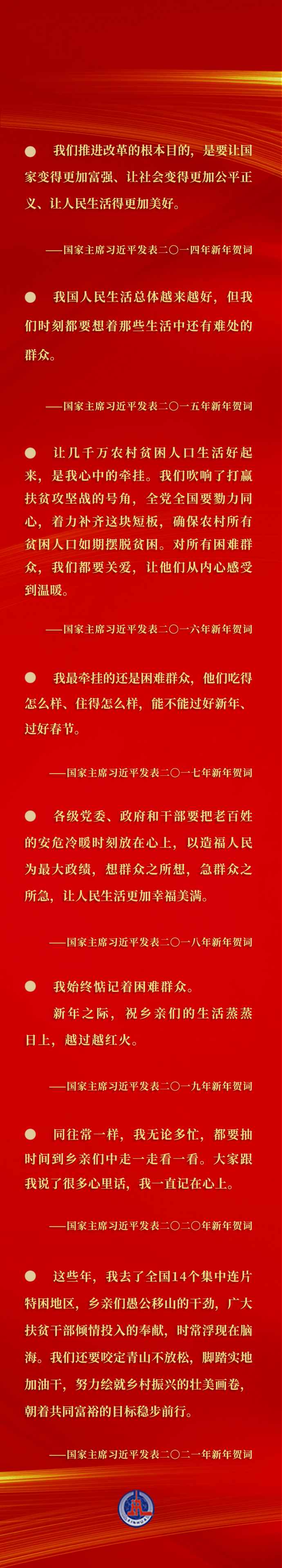 每年的新年賀詞,都在激勵我們乘勢而上、接續(xù)奮斗,匯聚激勵各族人民團結(jié)一心、并肩奮斗的強大合力。