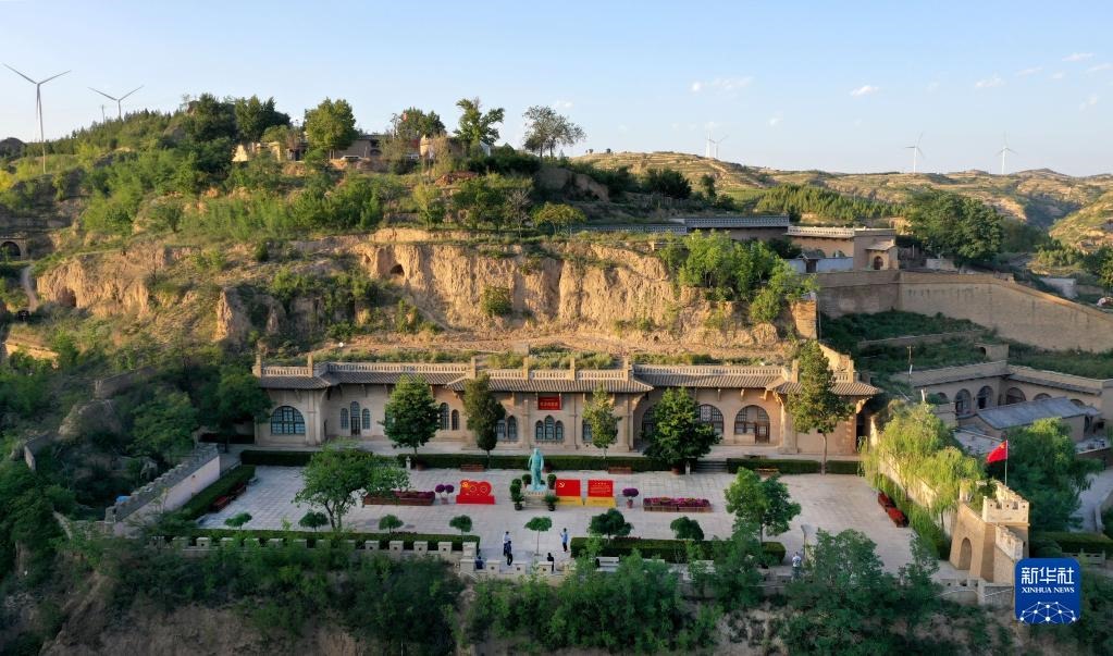 游人在陜西省榆林市米脂縣楊家溝革命舊址參觀(2021年9月10日攝,無人機照片)。新華社記者陶明攝