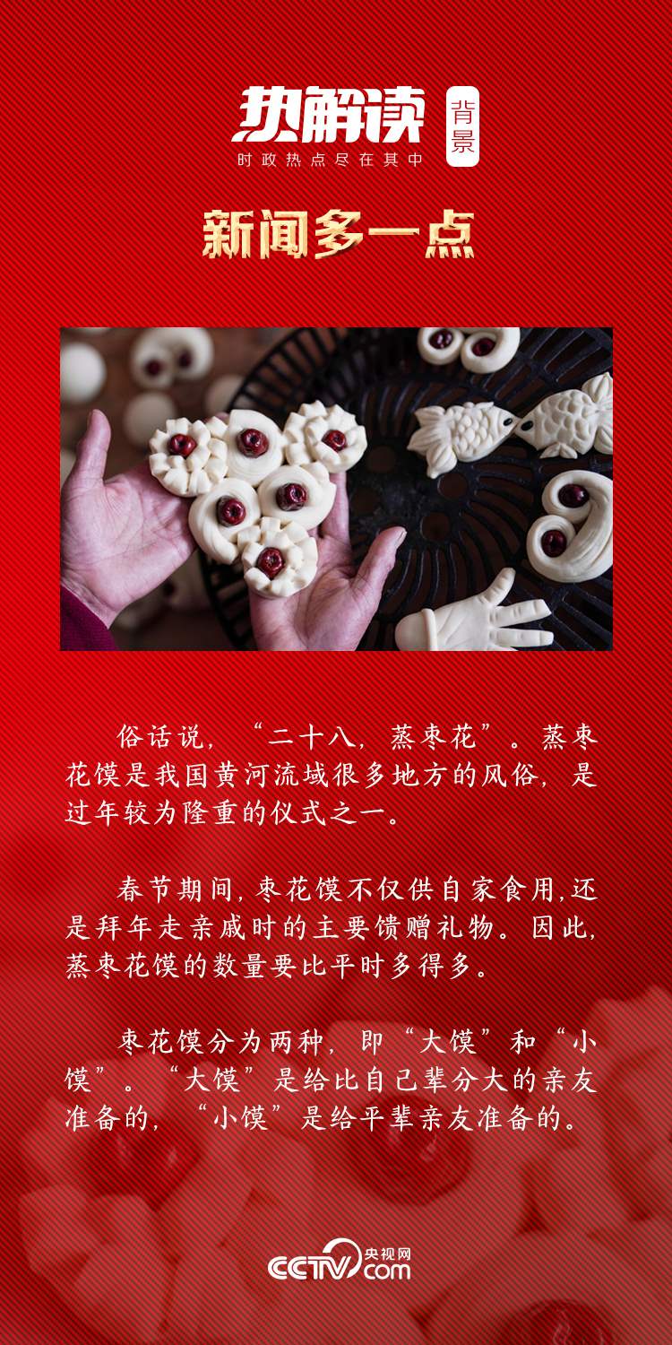 圓形的面坨裹著紅彤彤的大棗越堆越高,總書(shū)記細(xì)心地做了一塊棗花饃,疊放上去,寓意步步登高。