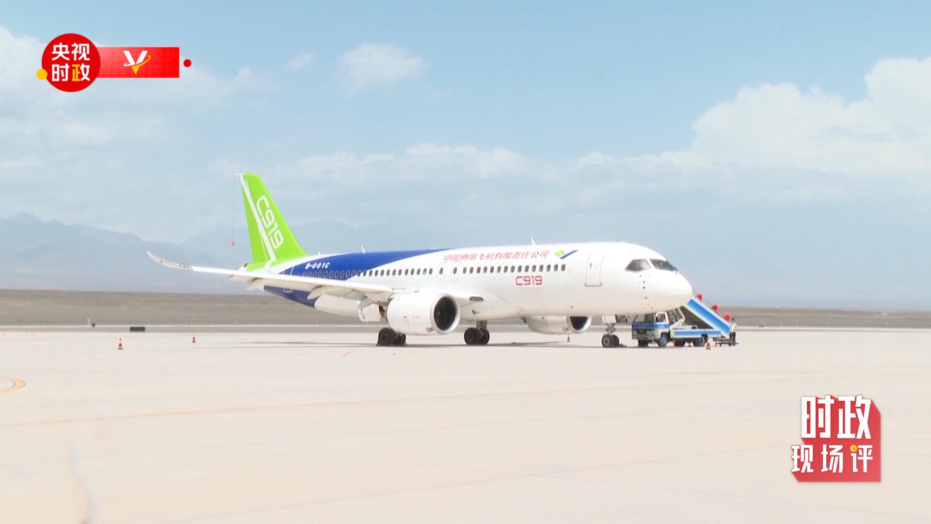 △在吐魯番開展高溫專項(xiàng)試飛的國產(chǎn)C919客機(jī)