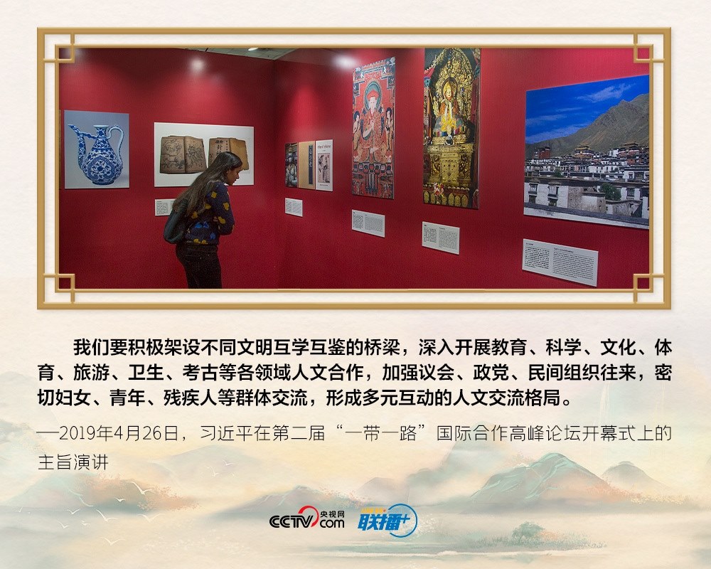 央視網(wǎng)《聯(lián)播+》推出精美海報(bào),與您一起學(xué)習(xí)領(lǐng)悟習(xí)主席的文明交流觀。
