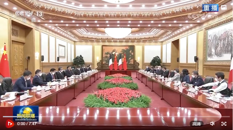 馬克龍表示,我對(duì)3年多前訪華情景記憶猶新,非常高興再次訪華,同習(xí)近平主席共同探討進(jìn)一步提升法中全面戰(zhàn)略伙伴關(guān)系。我完全贊同習(xí)近平主席對(duì)法中關(guān)系的積極評(píng)價(jià)以及就發(fā)展雙邊關(guān)系提出的重要建議。明年法中將共同慶祝建交60周年。60年來,法中關(guān)系保持了穩(wěn)定健康發(fā)展。雖然法中兩國(guó)發(fā)展模式不同,但雙方相互尊重,坦誠交流,各領(lǐng)域合作實(shí)現(xiàn)了互利互惠,同時(shí)在合作應(yīng)對(duì)當(dāng)今世界面臨的全球性挑戰(zhàn)方面取得重要進(jìn)展。法方尊重并奉行一個(gè)中國(guó)政策。我此次率龐大代表團(tuán)訪華,就是希望同中方加強(qiáng)合作,促進(jìn)人文交流。法方祝賀中方成功舉辦昆明-蒙特利爾《生物多樣性公約》第十五次締約方大會(huì),希望繼續(xù)在氣候變化、糧食安全等問題上同中方密切溝通合作。中方將舉辦第三屆“一帶一路”國(guó)際合作高峰論壇,法方愿同中方就此開展合作。法方贊賞中方始終遵守聯(lián)合國(guó)憲章宗旨,為解決國(guó)際地區(qū)熱點(diǎn)問題發(fā)揮積極作用,期待同中方密切溝通協(xié)作,努力實(shí)現(xiàn)世界的持久和平與穩(wěn)定。